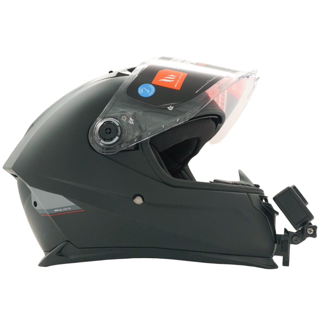 The best action camera mounts for an MT Helmets Braker SV. Our helmet camera mount for the MT Helmets Braker SV is designed to flow with the edges of your helmet. You spent a lot of money on your helmet, which is why you should get a quality Chin Mount for your MT Helmets Braker SV.