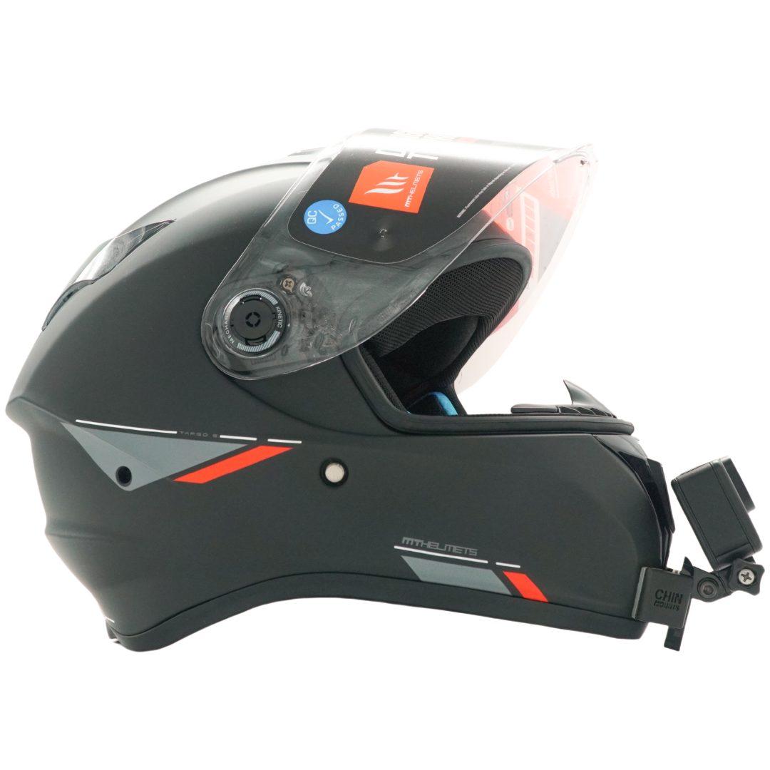 The best action camera mounts for an MT Helmets Targo S. Our helmet camera mount for the MT Helmets Targo S is designed to flow with the edges of your helmet. You spent a lot of money on your helmet, which is why you should get a quality Chin Mount for your MT Helmets Targo S.