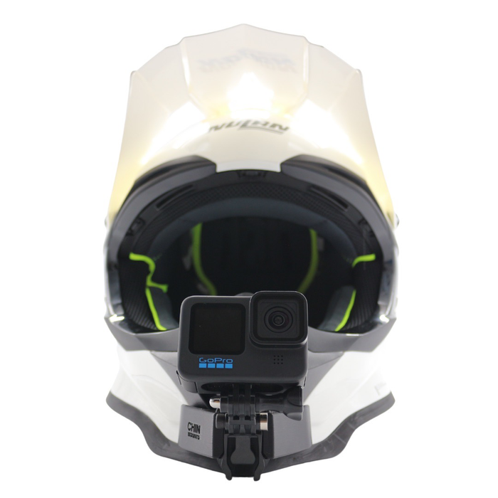 Mount your GoPro, Insta360 or other action camera to your Nolan N53 helmet using our custom Action Camera Chin Mount for true POV, clean, clear and steady recording every single ride.