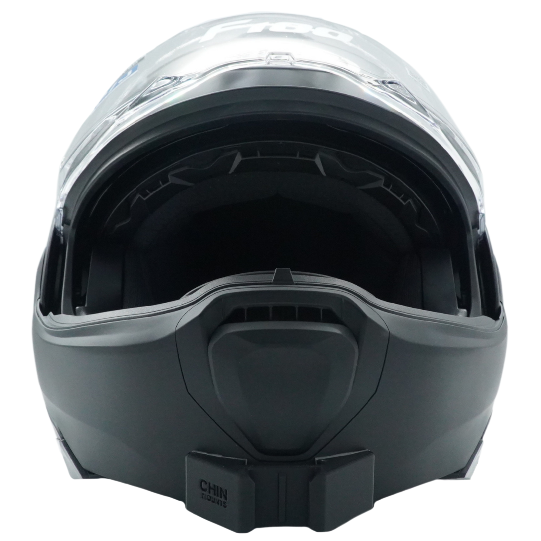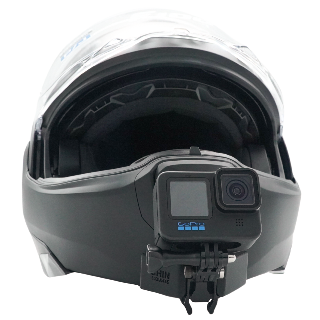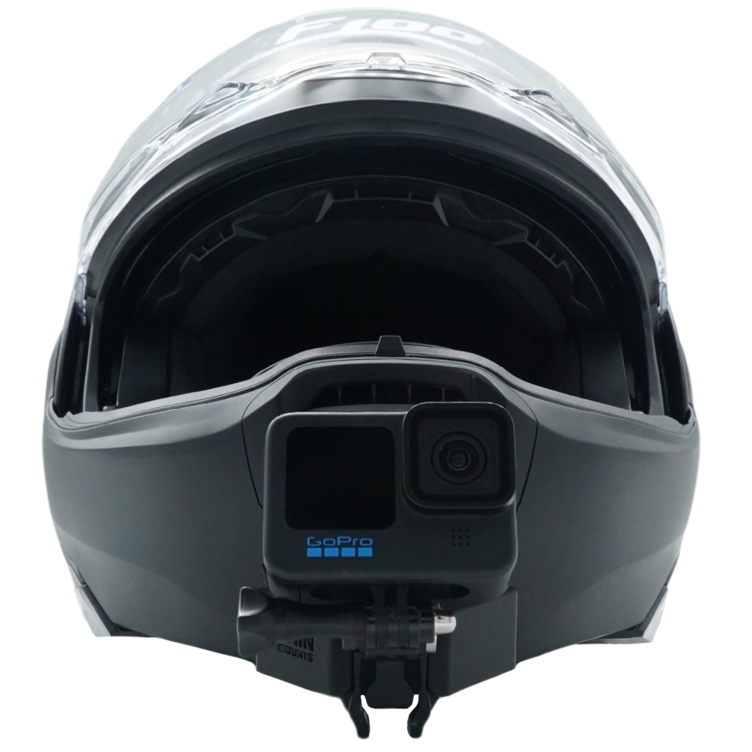 Mount your GoPro, Insta360 or other action camera to your HJC F100 helmet using our custom Action Camera Chin Mount for true POV, clean, clear and steady recording every single ride.