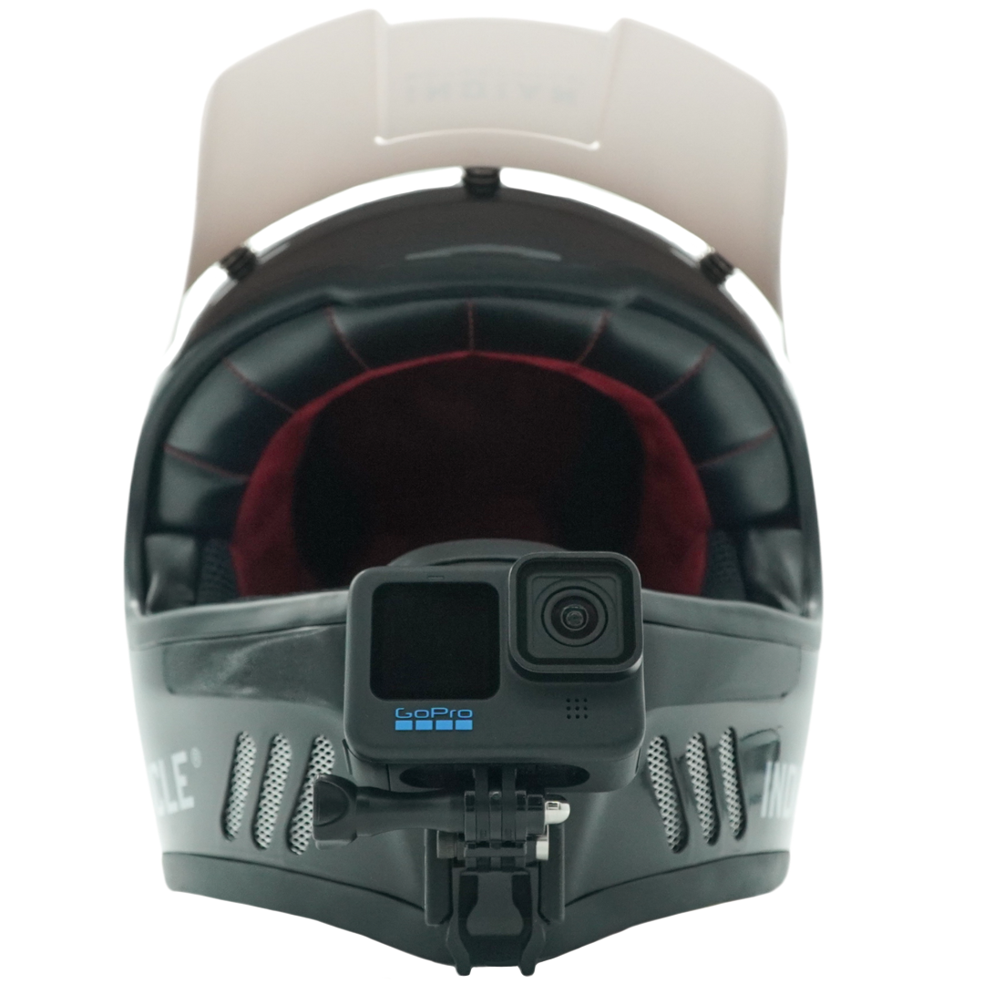 Mount your GoPro, Insta360 or other action camera to your Indian Adventure (A800) helmet using our custom Action Camera Chin Mount for true POV, clean, clear and steady recording every single ride.